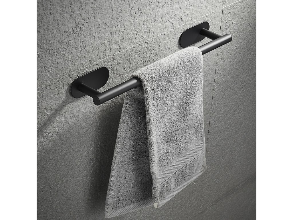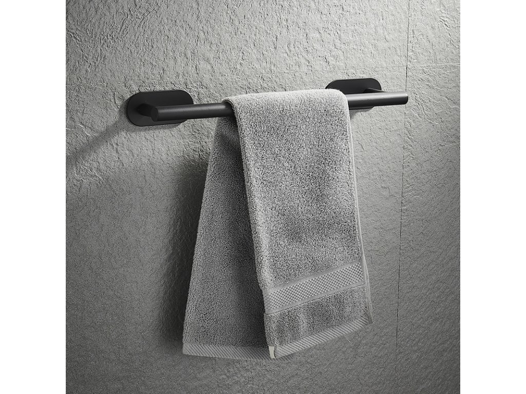CERANO - Samoprzylepny wieszak na ręczniki Reno - czarny mat - 60 cm