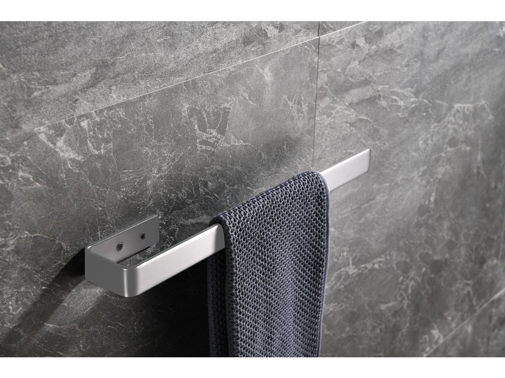 Uchwyt na ręczniki Cerano jest wykonany ze stali nierdzewnej , co czyni go wysoce odpornym na wilgoć i korozję. Jego design jest prosty, ale elegancki.