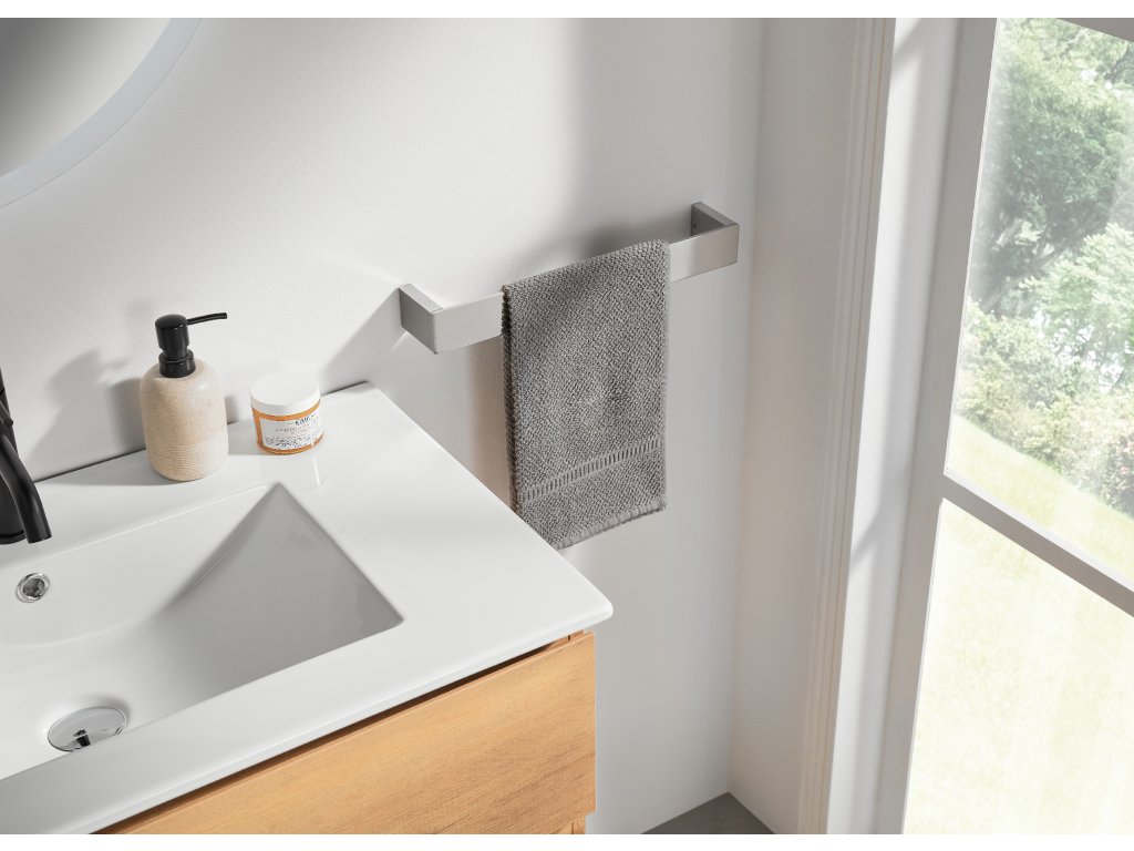 Uchwyt na ręczniki Camill jest wykonany ze stali nierdzewnej , co czyni go wysoce odpornym na wilgoć i korozję. Jego design jest prosty, ale elegancki.