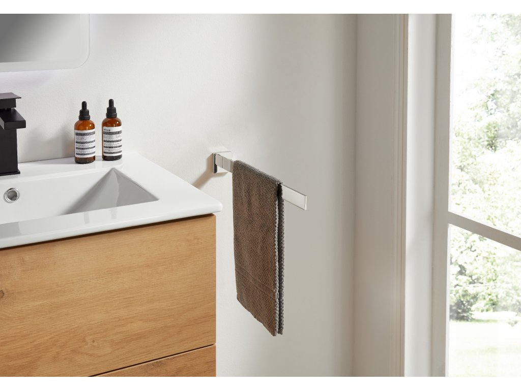 Uchwyt na ręczniki Cerano jest wykonany ze stali nierdzewnej , co czyni go wysoce odpornym na wilgoć i korozję. Jego design jest prosty, ale elegancki.
