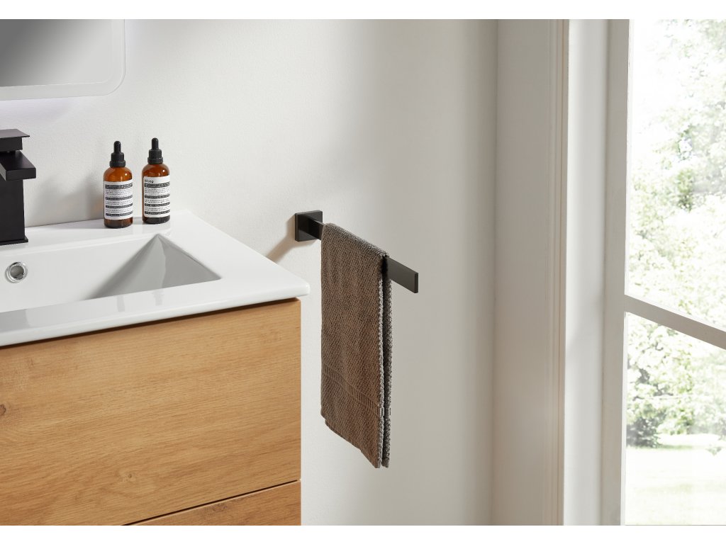 Wieszak na ręczniki Cerano wykonany jest ze stali nierdzewnej , co czyni go wysoce odpornym na wilgoć i korozję. Jego design jest prosty, ale elegancki.