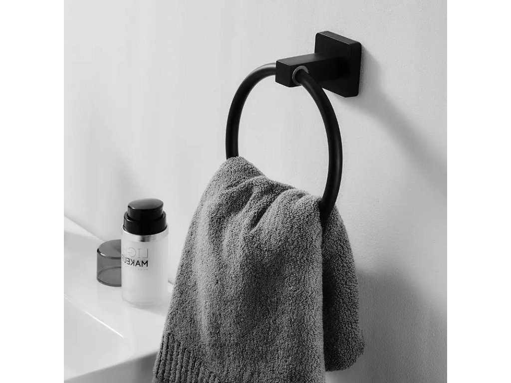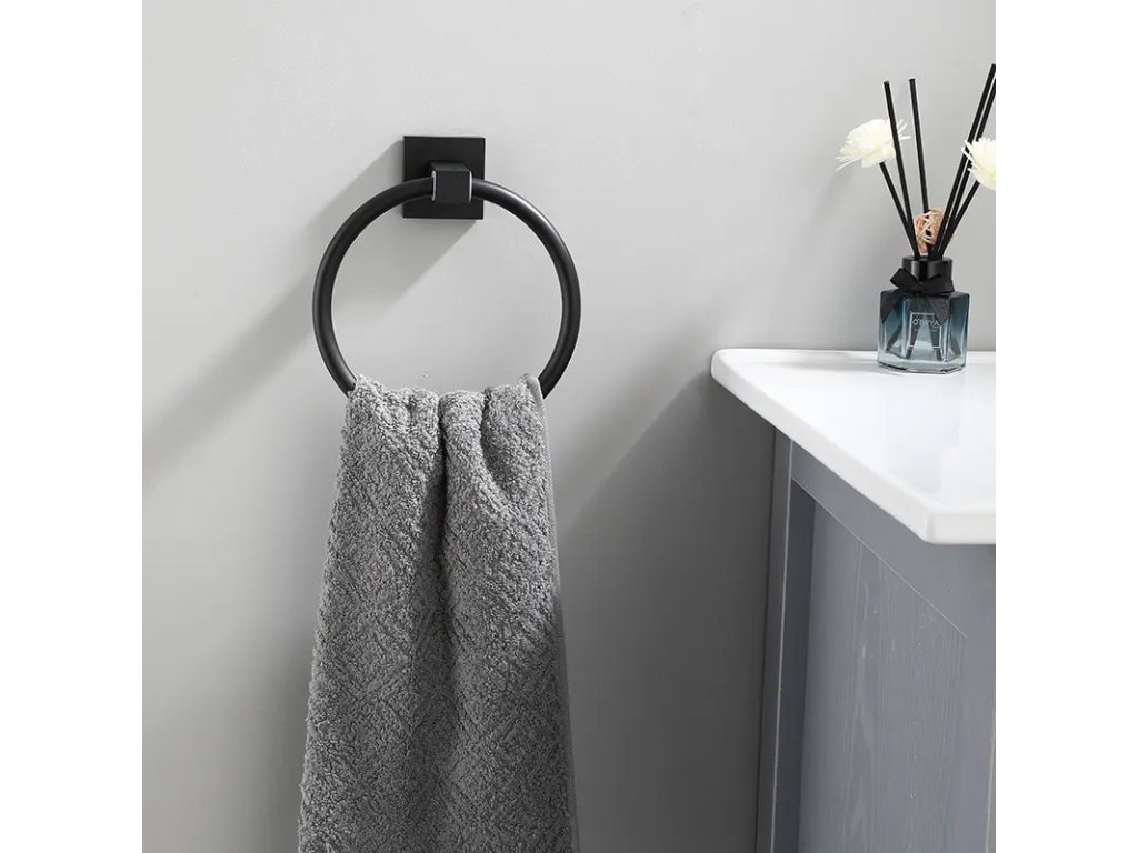 Z przodu znajduje się okrągły uchwyt do wieszania ręczników. Mocuje się go do ściany za pomocą małych wkrętów montażowych z kołkami. Ten sposób montażu zapewnia większą wytrzymałość i nośność całego uchwytu. Zestaw montażowy znajduje się w zestawie.