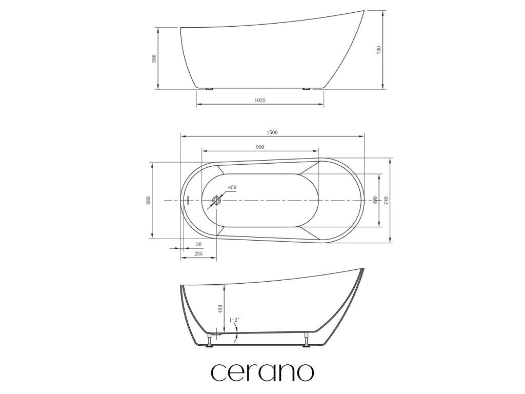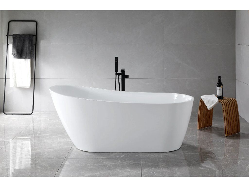 CERANO - Wanna wolnostojąca akrylowa Camelia - biała połysk - 150x70 cm