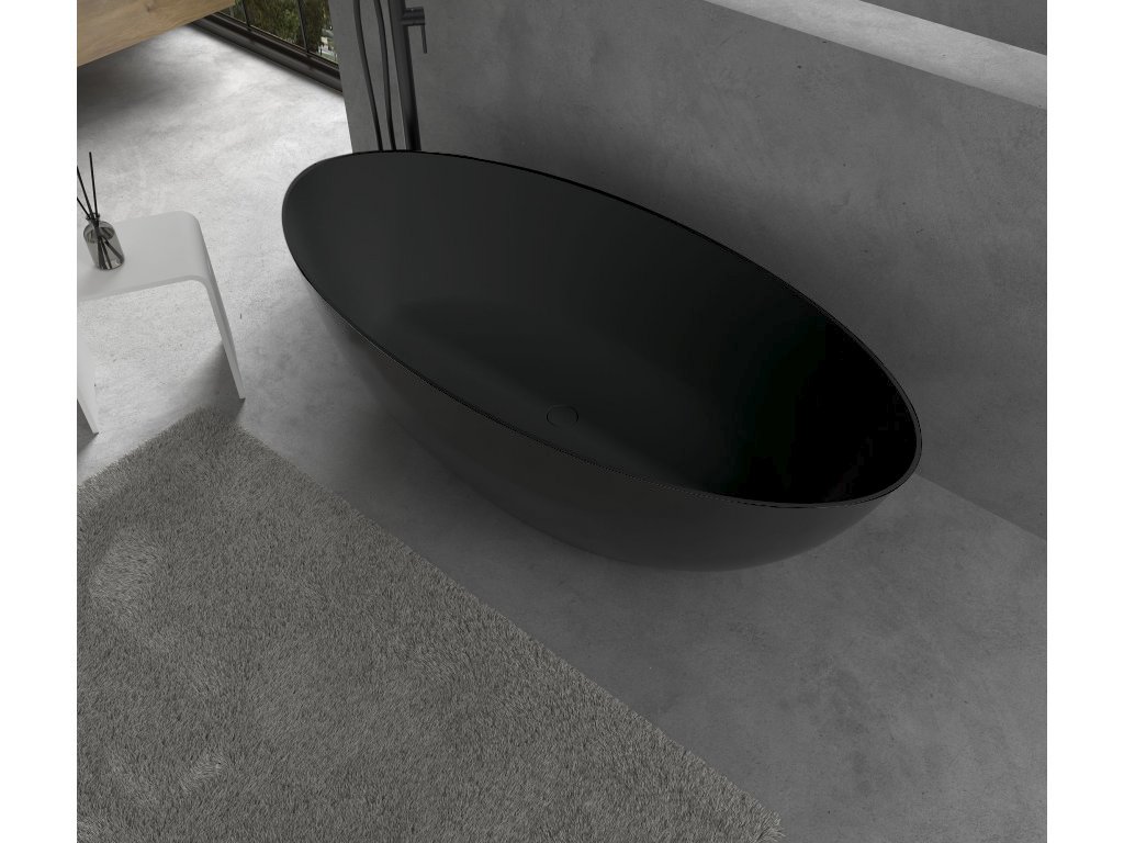 CERANO - Wanna wolnostojąca z lanego marmuru Emilia - czarny mat - 180x85cm