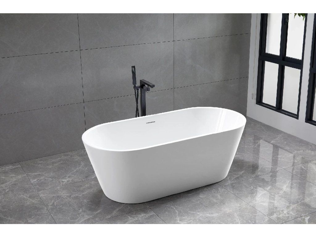 CERANO - Wolnostojąca wanna akrylowa Timea - biała połysk - 150x74 cm