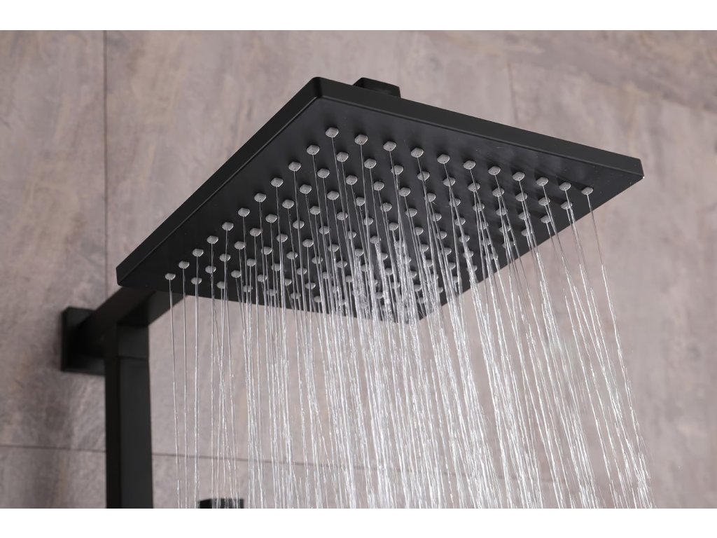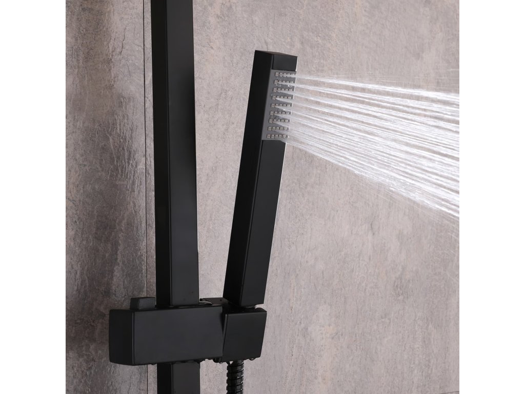 Deszczownica jest centralnym punktem tego zestawu, zapewniając orzeźwiające doznania. Dzięki swojej konstrukcji, woda rozprowadza się równomiernie i idealnie pokrywa całe ciało. Dodatkowo, za pomocą termostatu można łatwo regulować temperaturę i siłę strumienia wody. Prysznic ręczny natomiast zapewnia większą kontrolę nad prysznicem. Możesz go łatwo chwycić i skierować strumień wody tam, gdzie go potrzebujesz. Wąż prysznicowy wykonany jest z materiału odpornego na zginanie i rozciąganie.