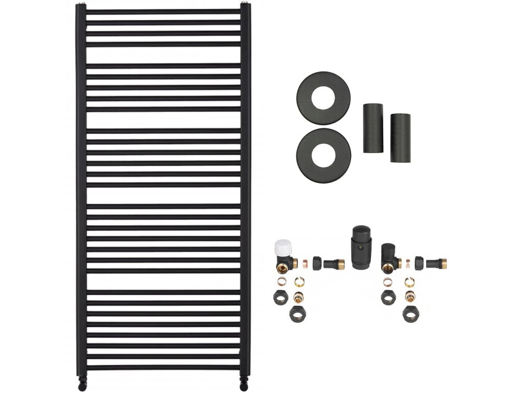 CERANO - Zestaw grzejników łazienkowych Alberto - ogrzewanie centralne - podłączenie boczne - 857W - matowy czarny - 1380x650 mm