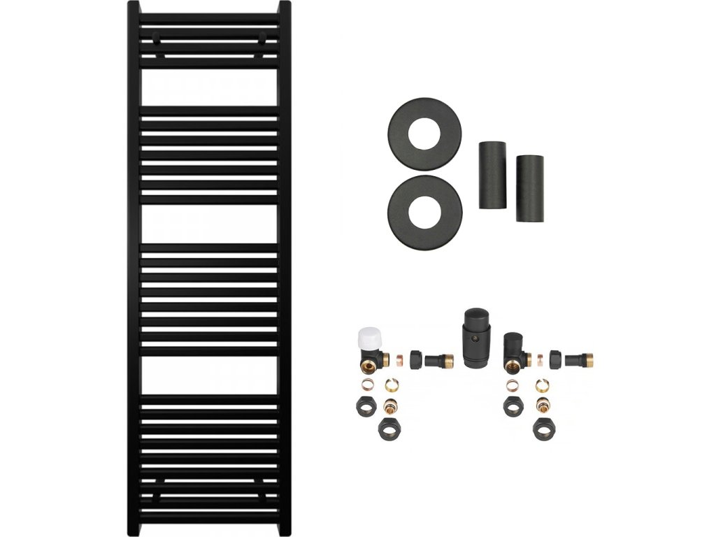 CERANO - Zestaw grzejników łazienkowych Donovan - ogrzewanie centralne - podłączenie boczne - 477W - mat czarny - 1600x500 mm
