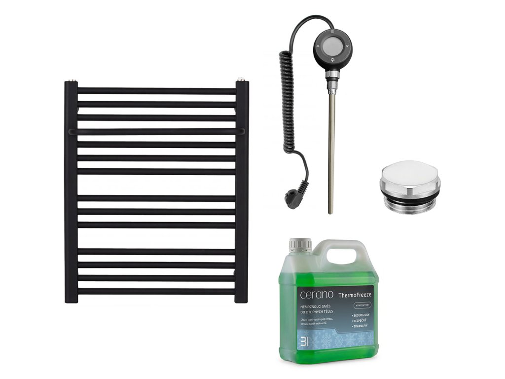 CERANO - Zestaw grzejników łazienkowych elektrycznych Antonio - WIFI - 300W - matowy czarny - 660x550mm
