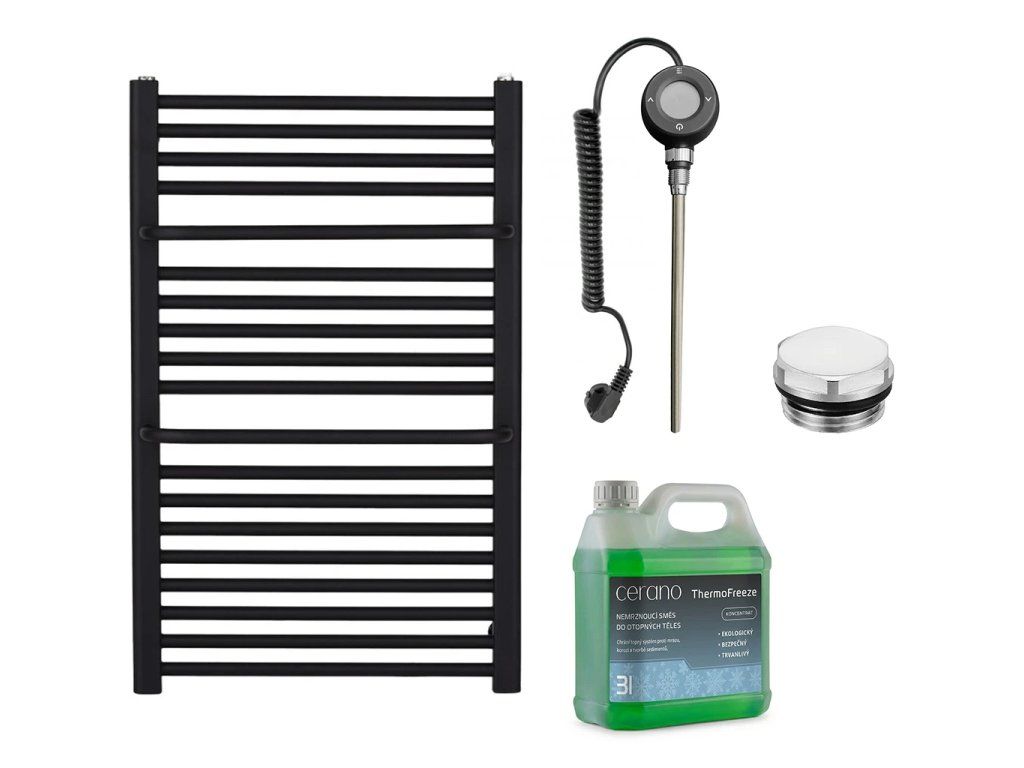 CERANO - Zestaw grzejników łazienkowych elektrycznych Antonio - WIFI - 300W - matowy czarny - 860x550 mm