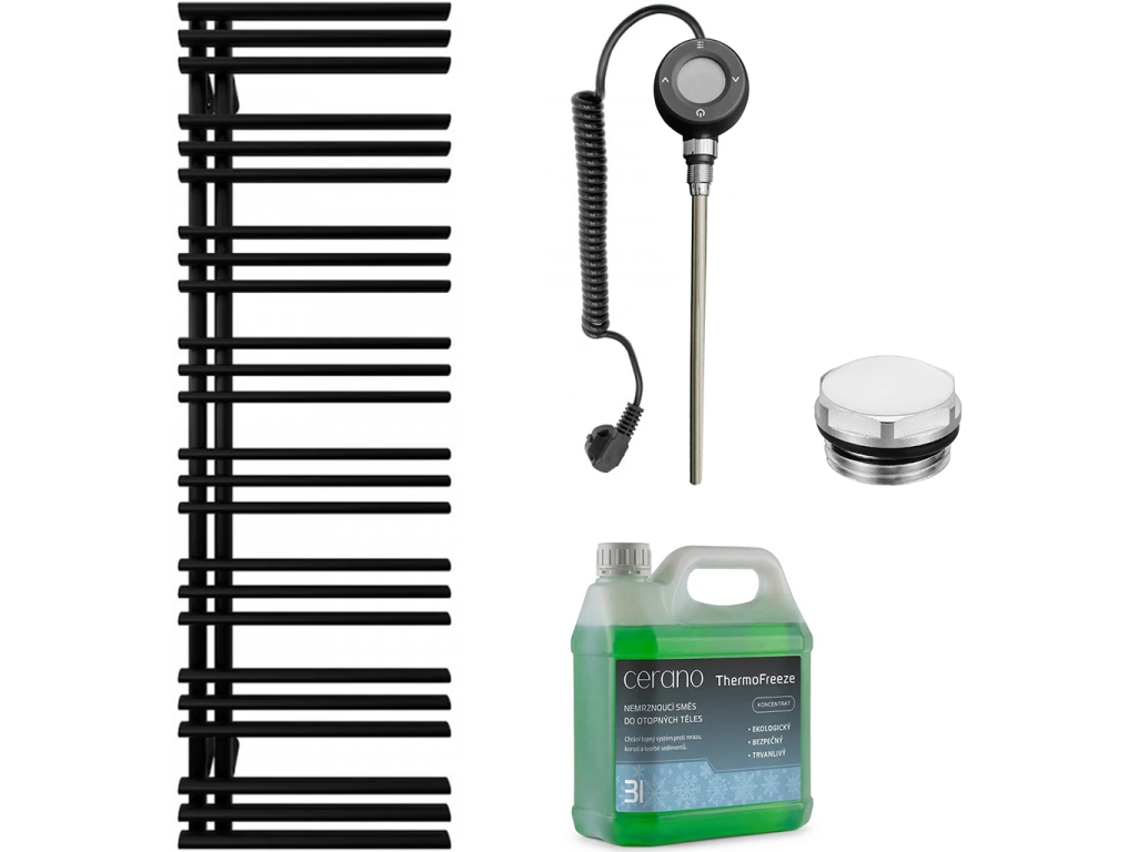 CERANO - Zestaw grzejników łazienkowych elektrycznych Burke - L/P - WIFI - 600W - matowy czarny - 1600x500 mm