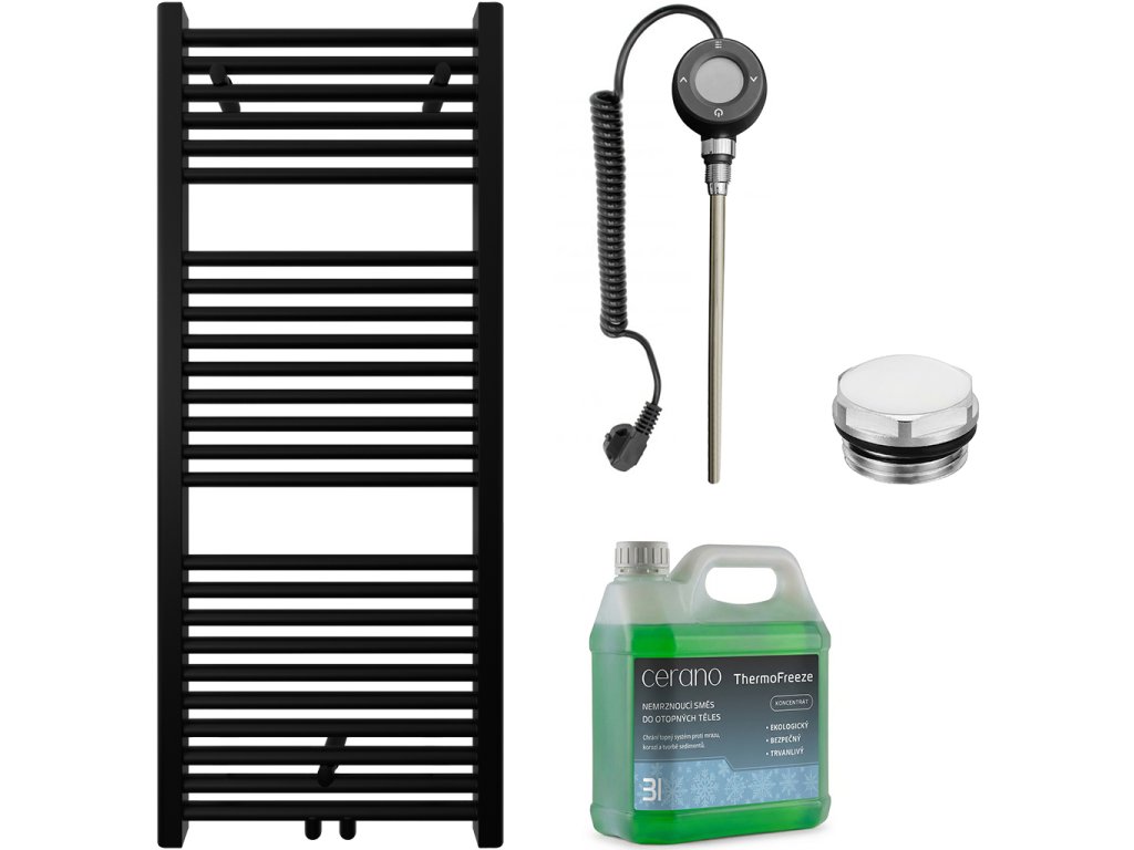 CERANO - Zestaw grzejników łazienkowych elektrycznych Lincoln - WIFI - 300W - matowy czarny - 1200x500 mm