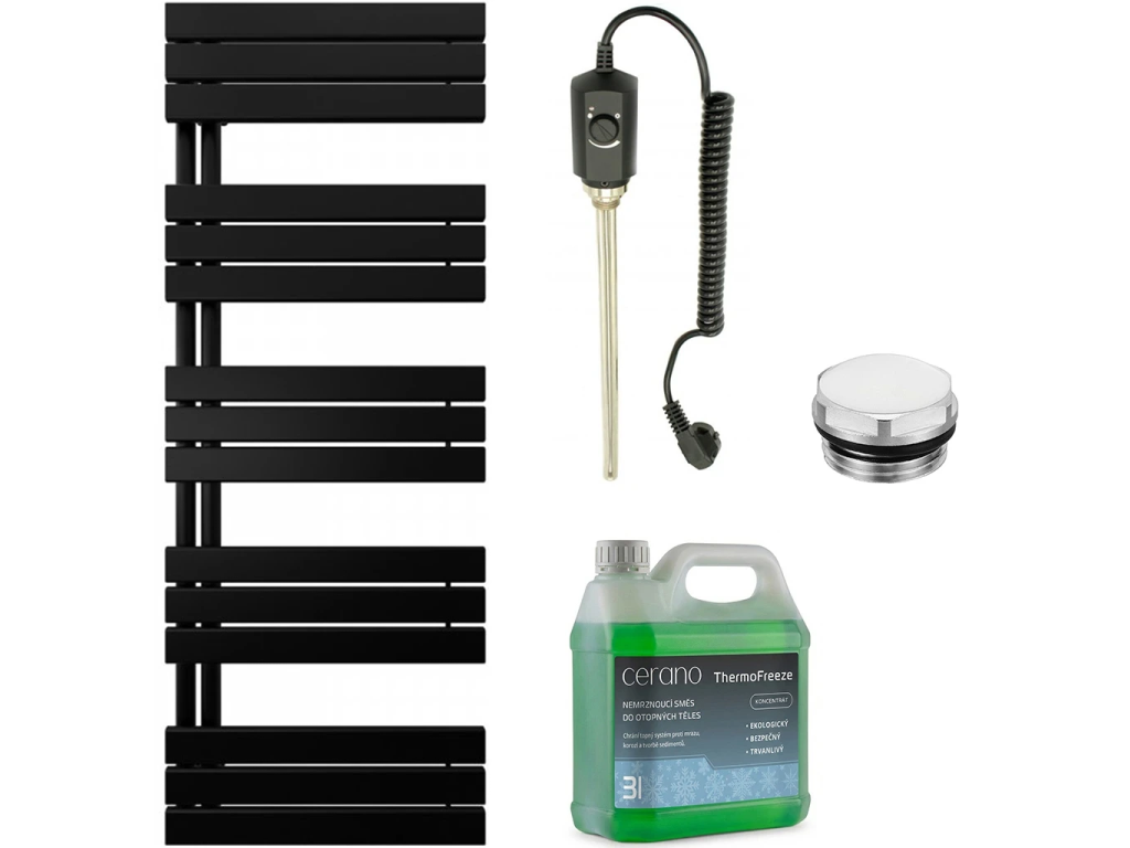 CERANO - Zestaw grzejników łazienkowych elektrycznych Theo - L/P - 900W - matowy czarny - 1600x500 mm