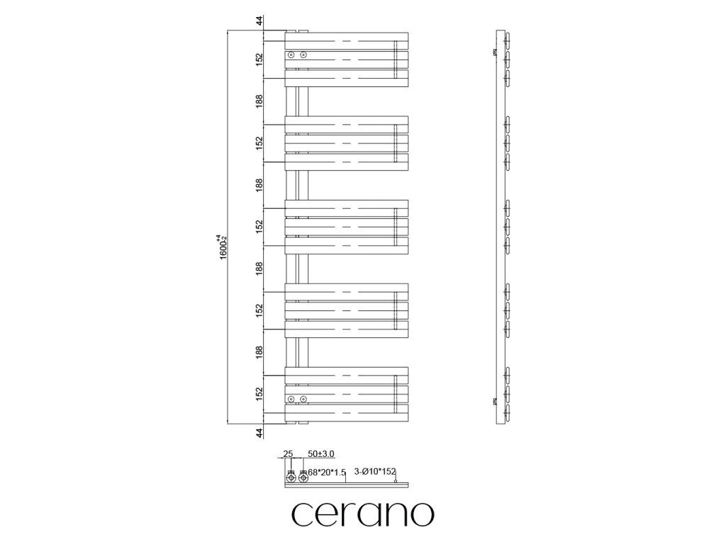 CERANO - Zestaw grzejników łazienkowych elektrycznych Theo - L/P - WIFI - 900W - matowy czarny - 1600x500 mm