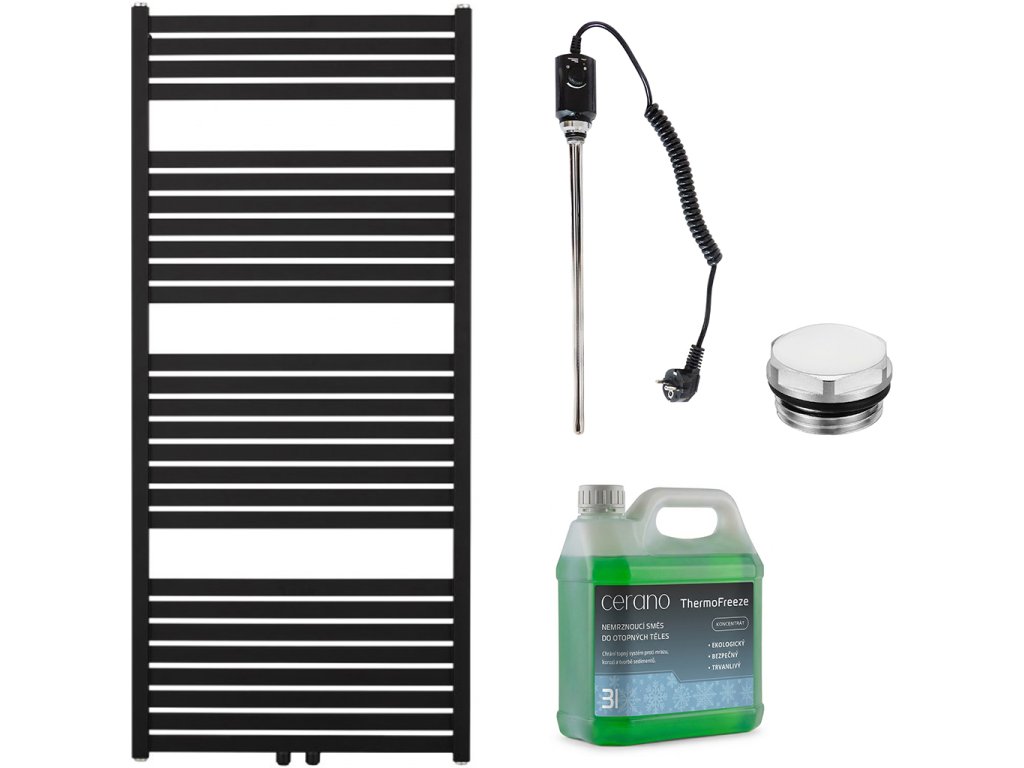 CERANO - Zestaw grzejników łazienkowych elektrycznych Vincenzo - 600W - matowy czarny - 1330x600 mm