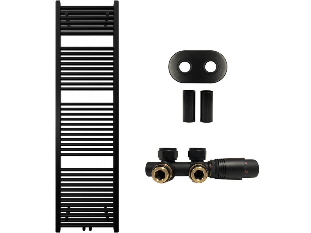 CERANO - Zestaw grzejników łazienkowych Lincoln - ogrzewanie centralne - przyłącze centralne 50 mm - 559W - mat czarny - 1800x500 mm