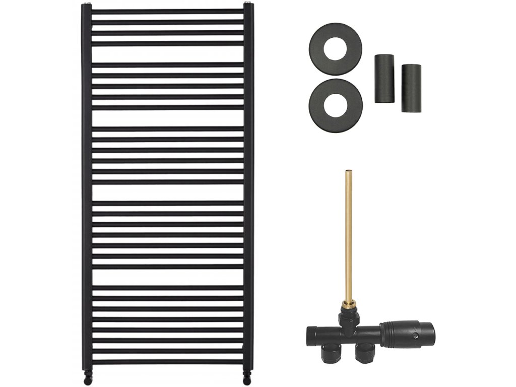 CERANO - Zestaw grzejnikowy łazienkowy Alberto - ogrzewanie centralne - podłączenie boczne jednopunktowe - 857W - mat czarny - 1380x650 mm
