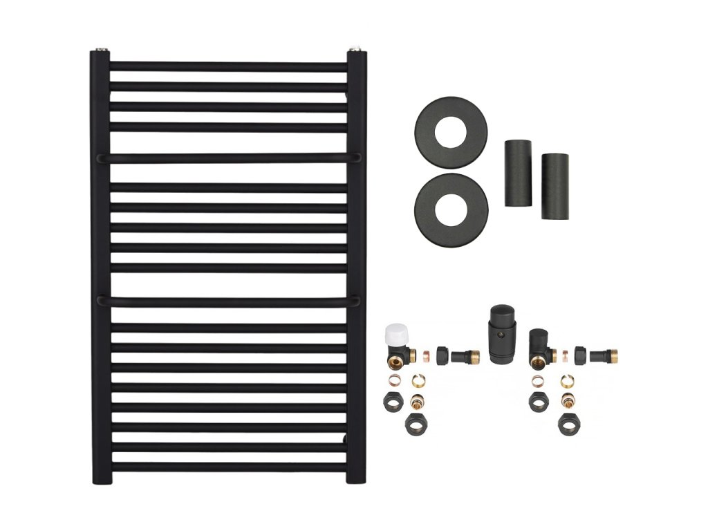 CERANO - Zestaw grzejnikowy łazienkowy Antonio - ogrzewanie centralne - podłączenie boczne - 484W - matowy czarny - 860x550 mm