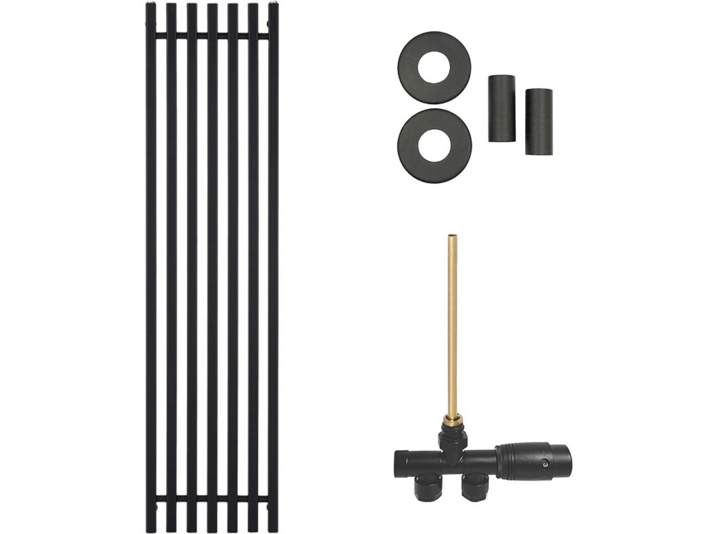 CERANO - Zestaw grzejnikowy łazienkowy Francesco - ogrzewanie centralne - podłączenie boczne jednopunktowe - 872W - mat czarny - 1500x390 mm