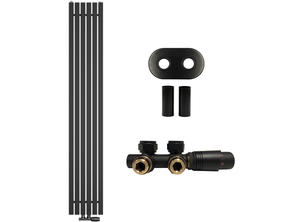 CERANO - Zestaw grzejnikowy łazienkowy Pyricus - ogrzewanie centralne - przyłącze centralne 50 mm - 643W - mat czarny - 1600x290 mm