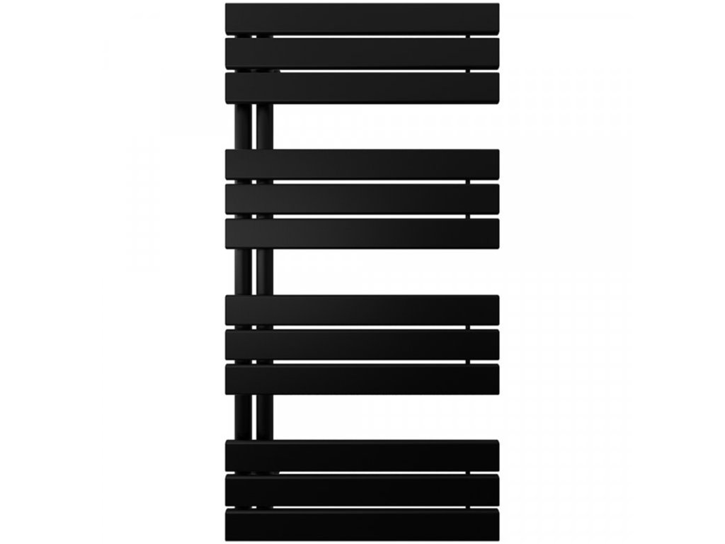 CERANO - Zestaw grzejnikowy łazienkowy Theo - ogrzewanie centralne - podłączenie asymetryczne 50 mm - 650W - czarny mat - 1200x500 mm
