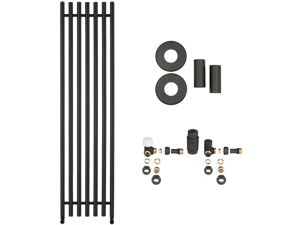 CERANO - Zestaw grzejnikowy łazienkowy Valerio - ogrzewanie centralne - podłączenie boczne - 872W - matowy czarny - 1560x390 mm