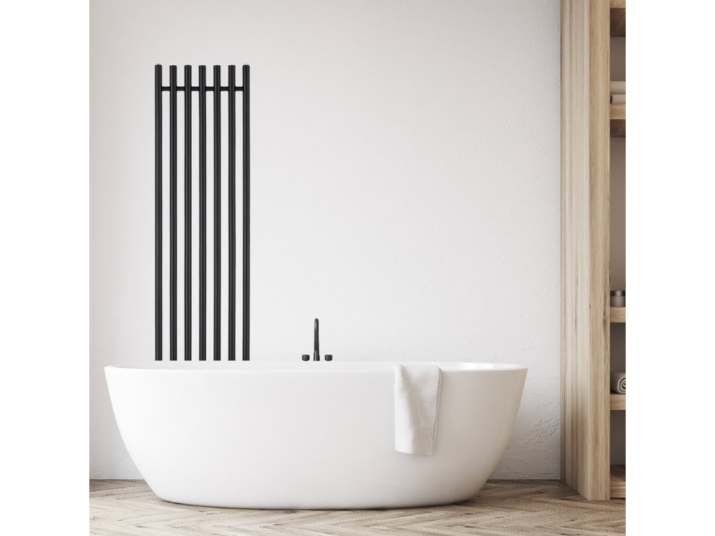 CERANO - Zestaw grzejnikowy łazienkowy Valerio - ogrzewanie centralne - podłączenie boczne jednopunktowe - 872W - mat czarny - 1560x390 mm