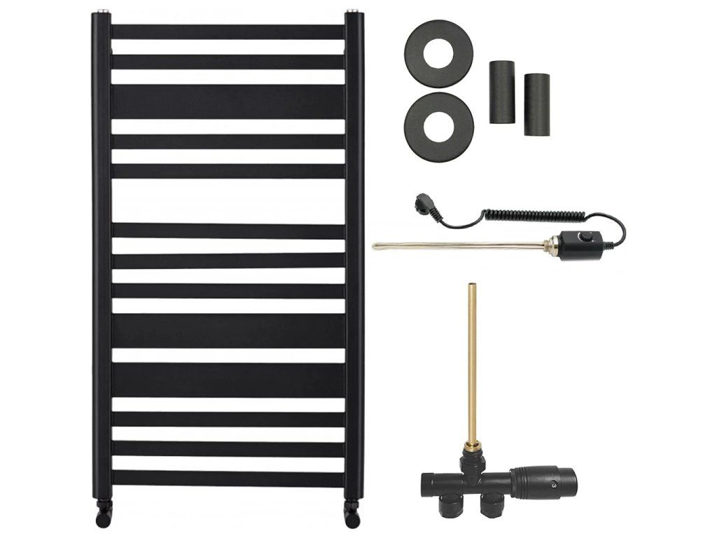 CERANO - Zestaw grzejnikowy łazienkowy Enrico - ogrzewanie kombinowane, listwa termostatyczna - podłączenie boczne jednopunktowe - 467W - matowy czarny - 970x500 mm
