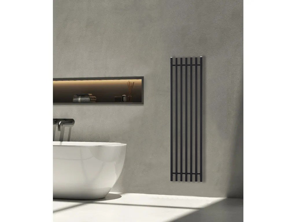 CERANO - Zestaw grzejnikowy łazienkowy Francesco - ogrzewanie kombinowane, listwa termostatyczna - podłączenie boczne jednopunktowe - 872W - matowy czarny - 1500x390 mm