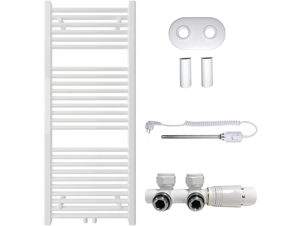CERANO - Zestaw grzejnikowy łazienkowy Lincoln - ogrzewanie kombinowane, termostat - podłączenie centralne 50 mm - 366W - połysk biały - 1200x500 mm