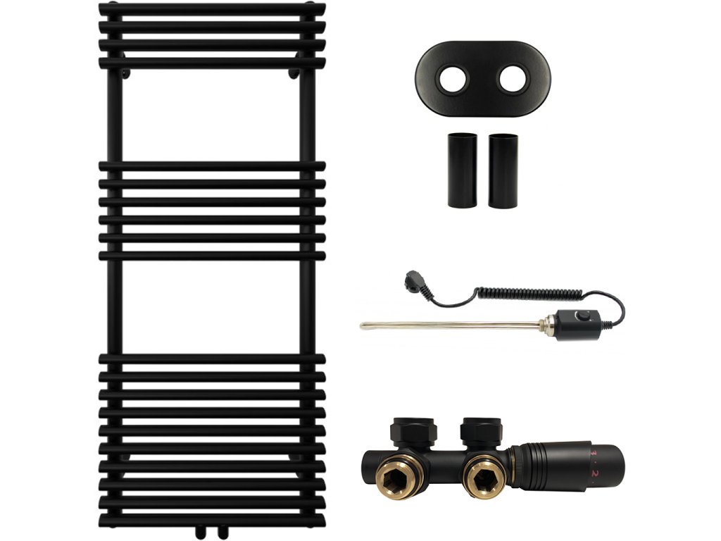 CERANO - Zestaw grzejnikowy łazienkowy Luigi - ogrzewanie kombinowane, listwa termostatyczna - podłączenie centralne 50 mm - 545W - czarny mat - 1200x500 mm