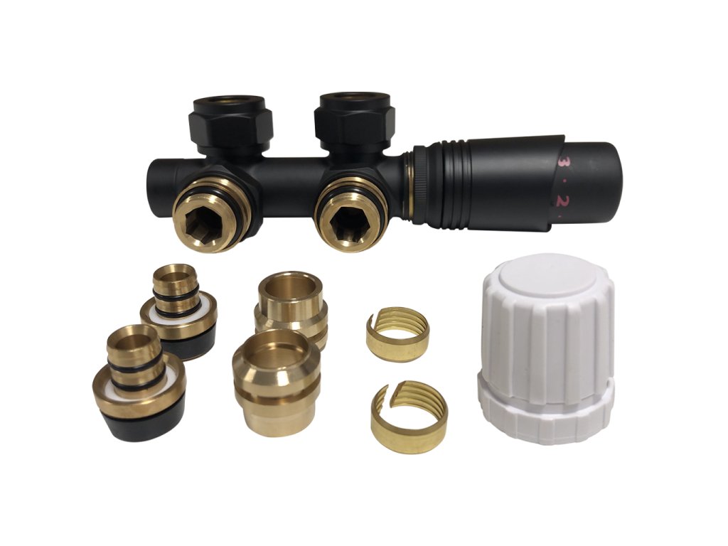 Zawory przyłączeniowe są zazwyczaj dostarczane ze złączką zaciskową do najpopularniejszych rur (Ø15 mm Cu i Ø16 mm Alupex), więc nie ma potrzeby dokupowania dodatkowych elementów do podłączenia. Zalecamy zakup rozet maskujących do zakrycia rur zasilających i otworów w ścianie.