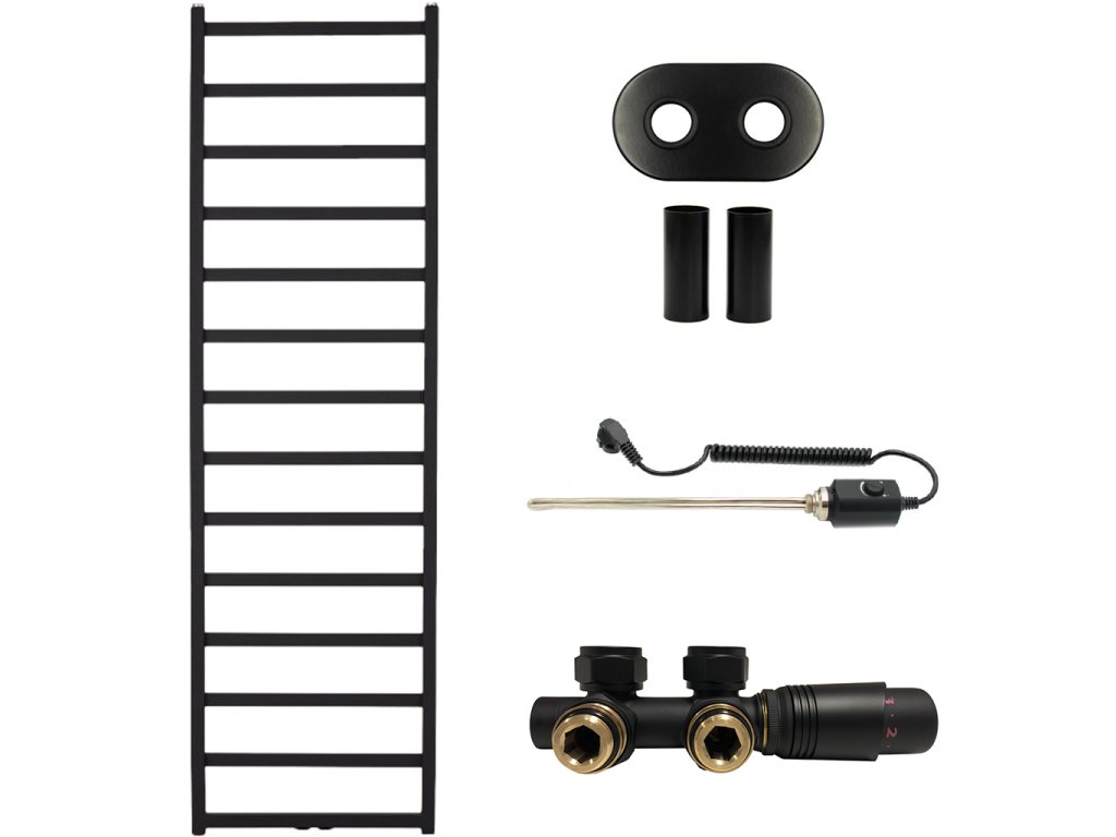 CERANO - Zestaw grzejnikowy łazienkowy Pyrodes - ogrzewanie kombinowane, termostat - podłączenie centralne 50 mm - 725W - matowy czarny - 1780x530 mm