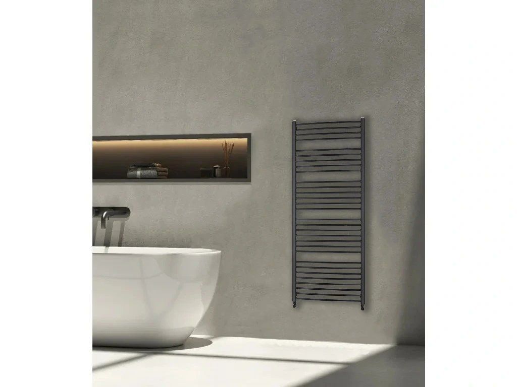 CERANO - Zestaw grzejnikowy łazienkowy Stefano - ogrzewanie kombinowane, listwa termostatyczna - podłączenie boczne jednopunktowe - 773W - matowy czarny - 1460x650 mm