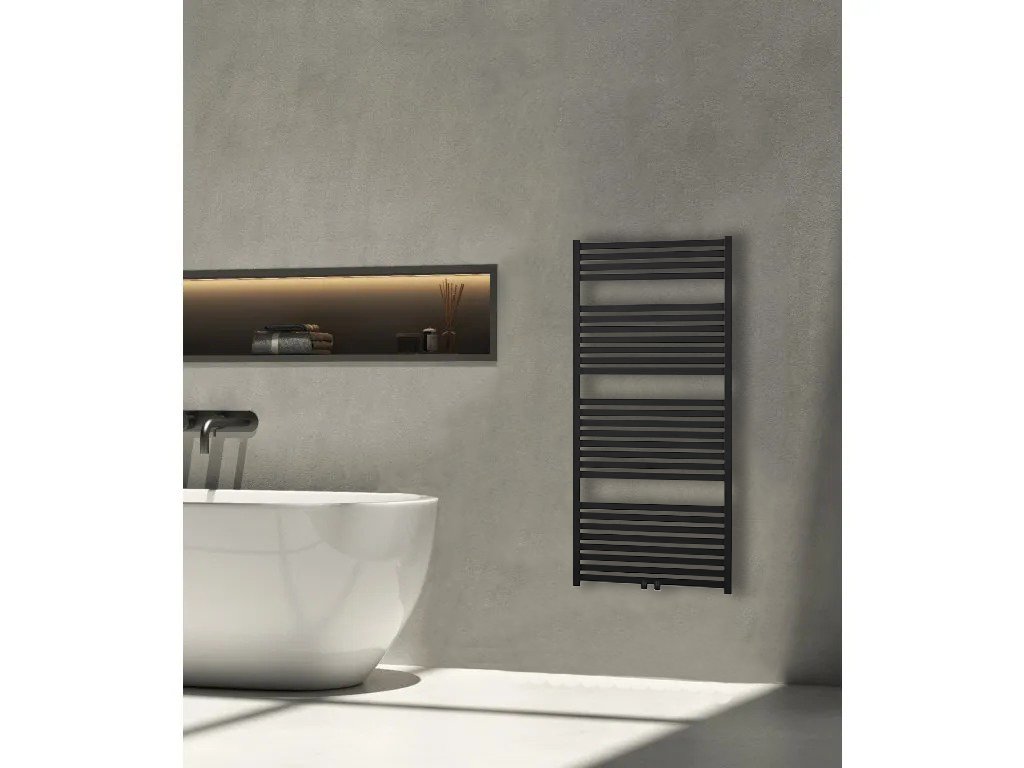 CERANO - Zestaw grzejnikowy łazienkowy Vincenzo - ogrzewanie kombinowane, listwa termostatyczna - podłączenie centralne 50 mm - 600W - czarny mat - 1330x600 mm