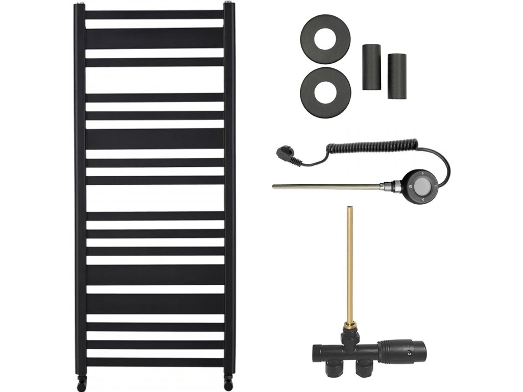 CERANO - Zestaw grzejnikowy łazienkowy Enrico - ogrzewanie kombinowane, listwa WiFi - podłączenie boczne jednopunktowe - 559W - matowy czarny - 1210x550 mm