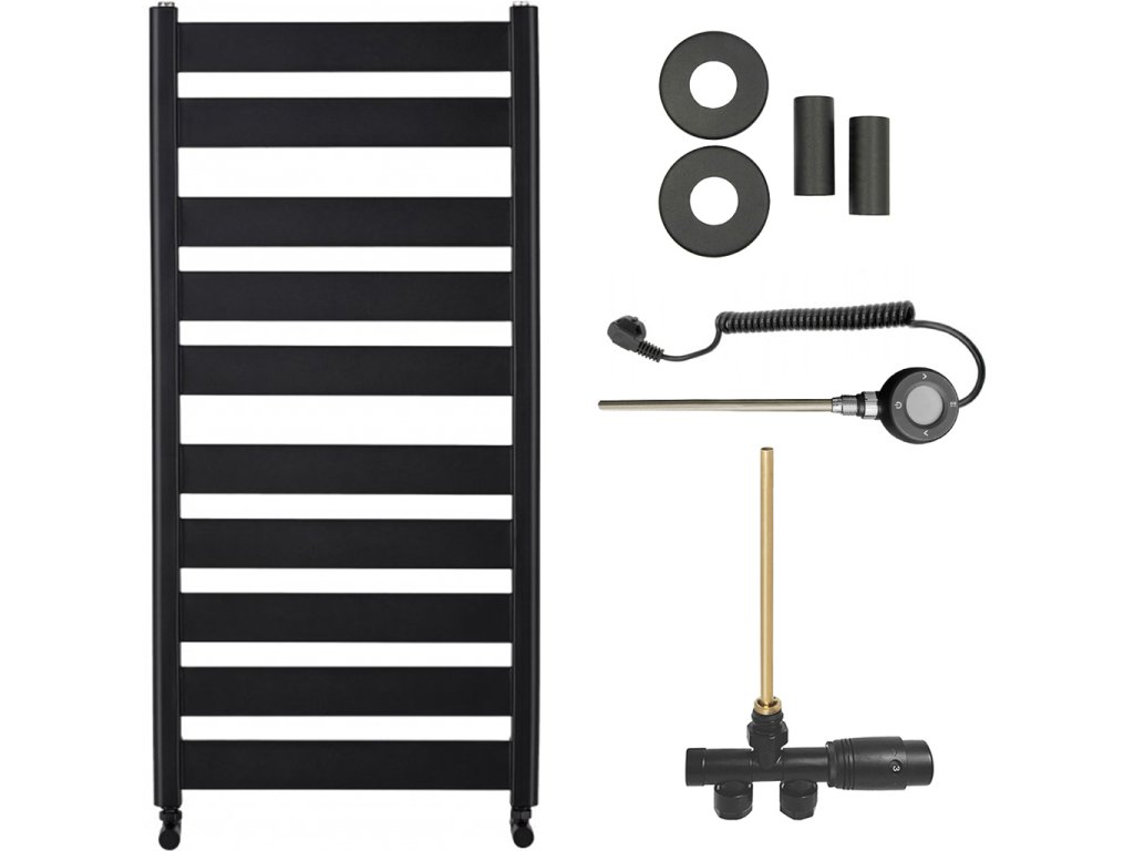 CERANO - Zestaw grzejnikowy łazienkowy Marco - ogrzewanie kombinowane, listwa WiFi - podłączenie boczne jednopunktowe - 816W - mat czarny - 1125x550 mm