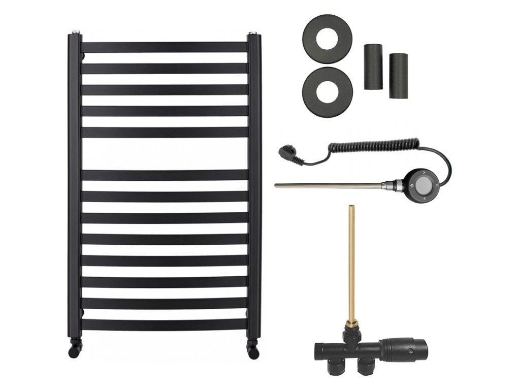 CERANO - Zestaw grzejnikowy łazienkowy Paolo - ogrzewanie kombinowane, listwa WiFi - podłączenie boczne jednopunktowe - 568W - matowy czarny - 850x550 mm