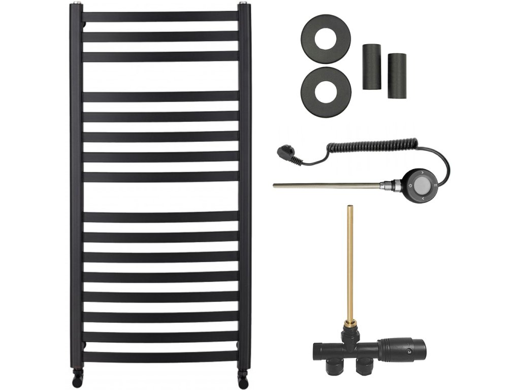 CERANO - Zestaw grzejnikowy łazienkowy Paolo - ogrzewanie kombinowane, listwa WiFi - podłączenie boczne jednopunktowe - 604W - matowy czarny - 1090x550 mm
