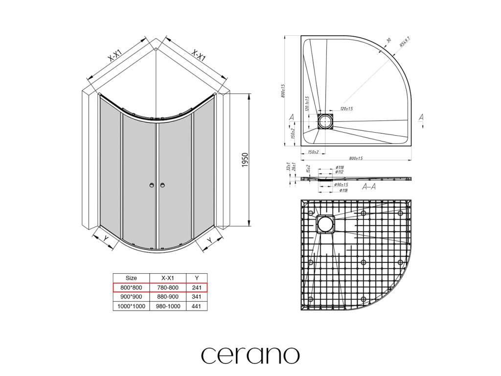 W ramach tej serii oferujemy trzy sprawdzone rozmiary, które spełniają najczęstsze wymagania nowoczesnych łazienek. Ta narożna kabina prysznicowa została zaprojektowana z naciskiem na idealne dopasowanie do półokrągłych brodzików CERANO o tym samym rozmiarze, co ułatwia montaż i tworzy jednolity, harmonijny wygląd. Jednocześnie wysoka kompatybilność eliminuje konieczność skomplikowanych regulacji i adaptacji. Dzięki elastycznemu montażowi można ją łatwo zamontować na pasującym brodziku lub bezpośrednio na przygotowanej posadzce z odpływem – w zależności od indywidualnych możliwości konstrukcyjnych i preferencji estetycznych.