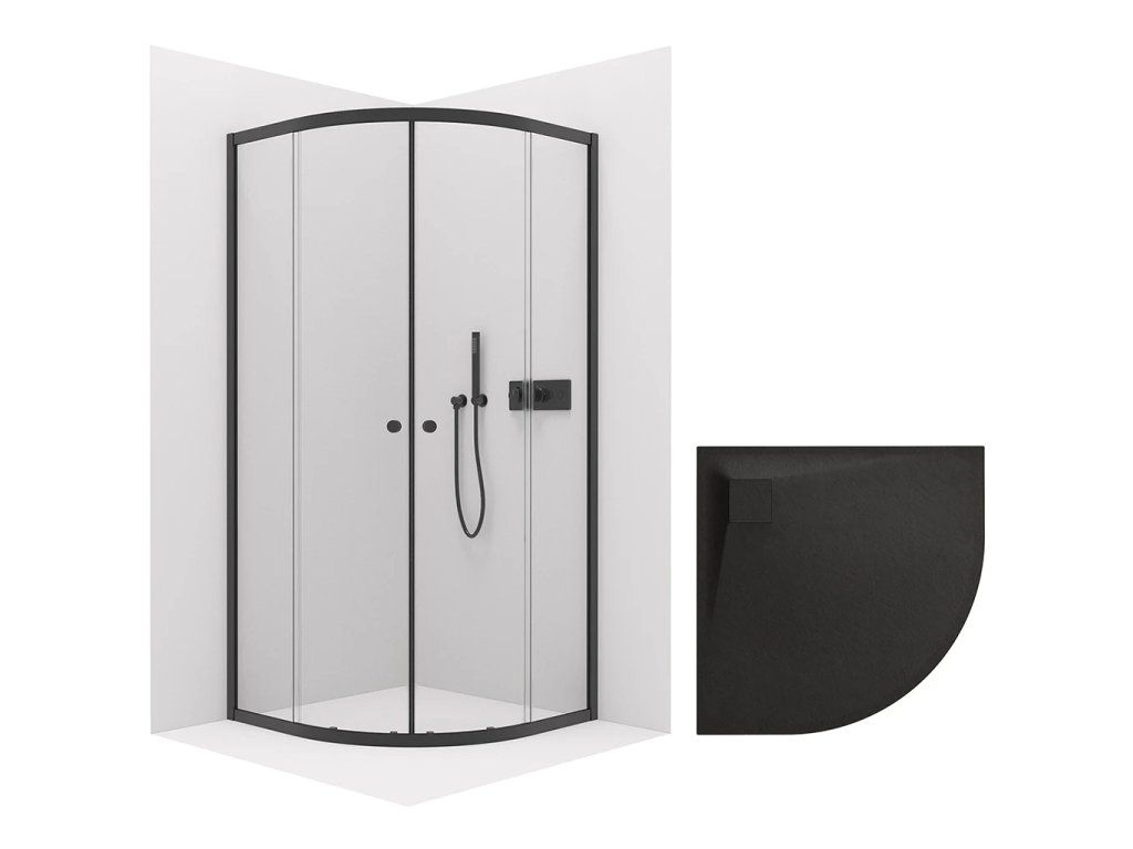 CERANO - Kabina prysznicowa Orso L/P 5 mm - R550 - czarny mat + CERANO - Brodzik Quarto - R550 - strukturalny czarny mat - 90x90 cm