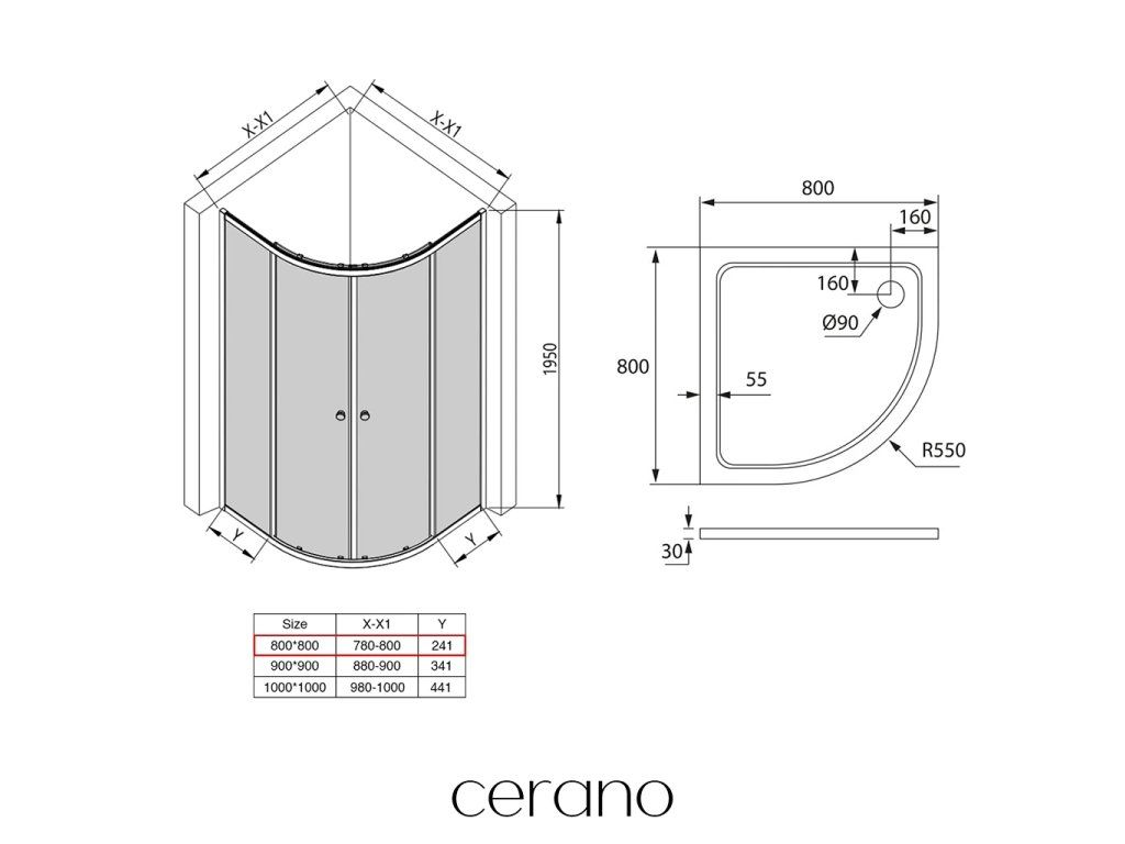 W ramach tej serii oferujemy trzy sprawdzone rozmiary, które spełniają najczęstsze wymagania nowoczesnych łazienek. Ta narożna kabina prysznicowa została zaprojektowana z naciskiem na idealne dopasowanie do półokrągłych brodzików CERANO o tym samym rozmiarze, co ułatwia montaż i tworzy jednolity, harmonijny wygląd. Jednocześnie wysoka kompatybilność eliminuje konieczność skomplikowanych regulacji i adaptacji. Dzięki elastycznemu montażowi można ją łatwo zamontować na pasującym brodziku lub bezpośrednio na przygotowanej posadzce z odpływem – w zależności od indywidualnych możliwości konstrukcyjnych i preferencji estetycznych.