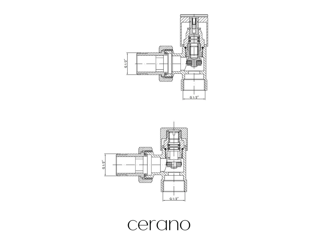 CERANO - Zestaw przyłączeniowy do zaworów grzejnikowych - ręczny - kątowy - 1/2"/1/2" - chrom