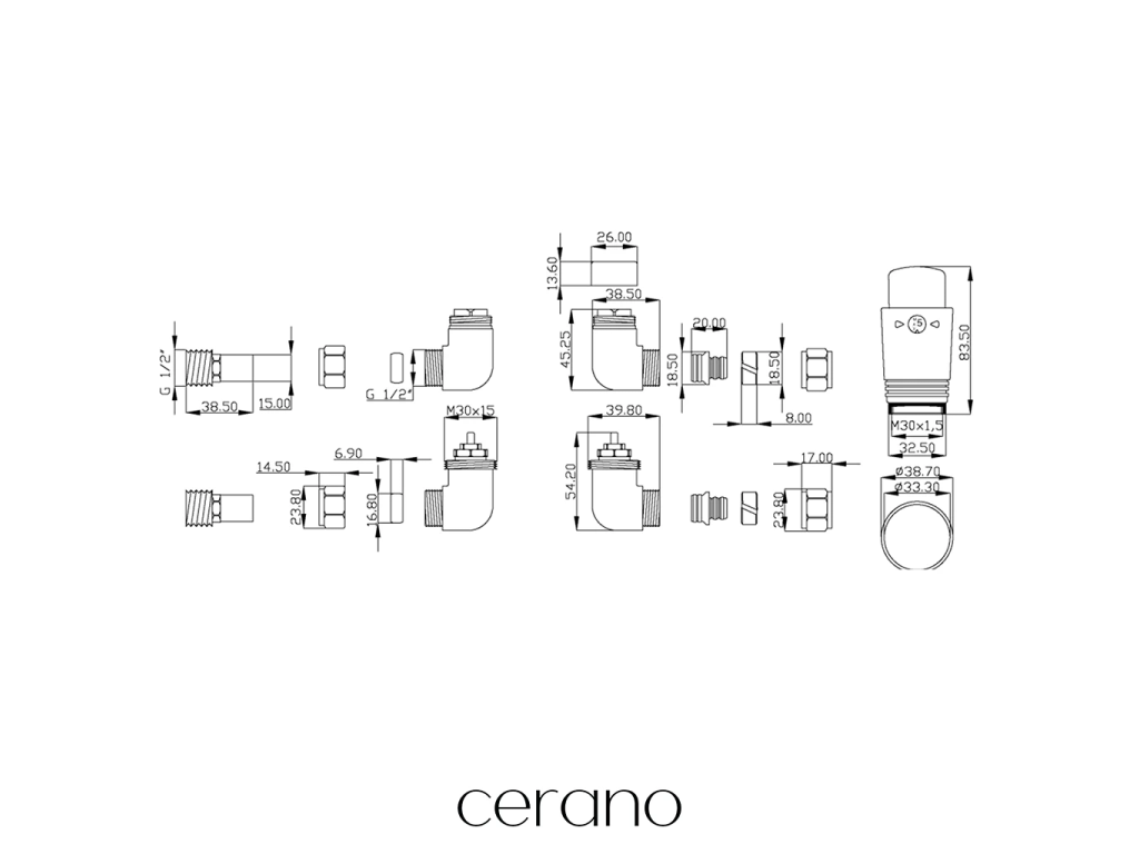 CERANO - Zestaw przyłączeniowy do zaworu grzejnikowego z głowicą termostatyczną - narożny - czarny mat