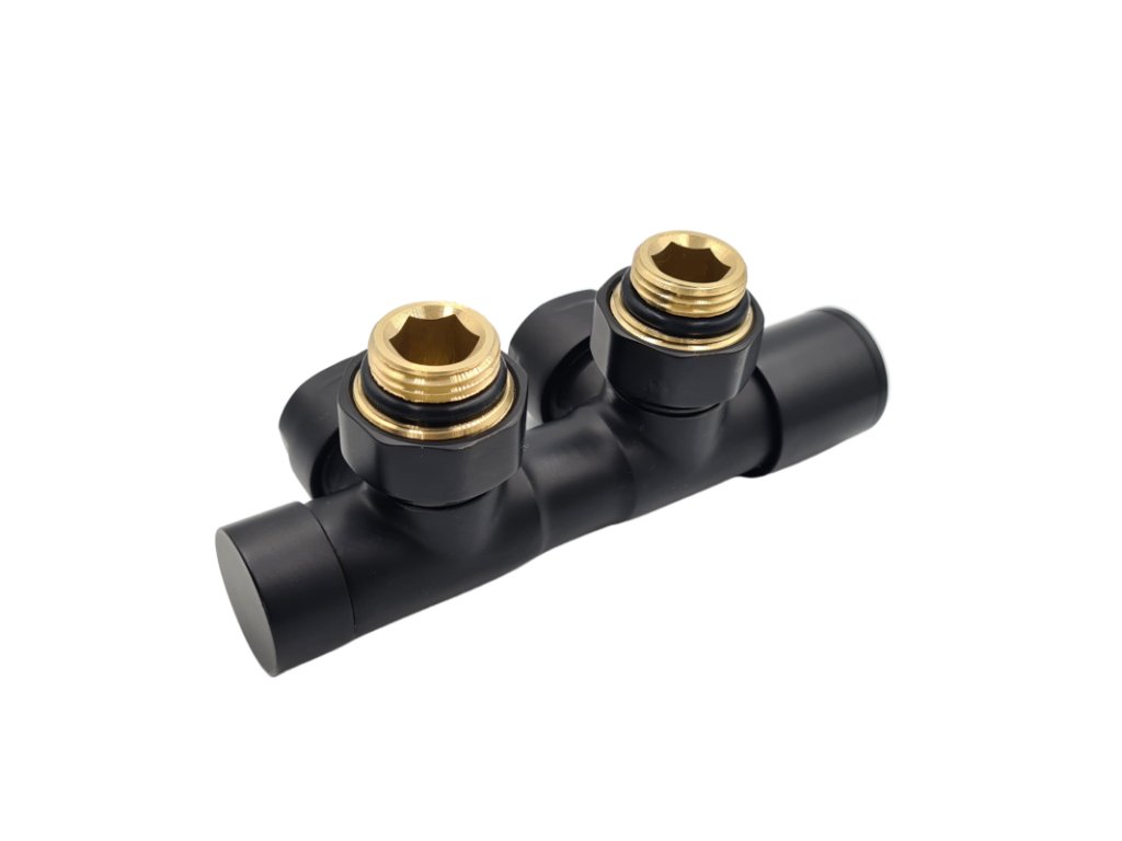 - Łączy zasilanie i powrót (czyli oba otwory grzejnikowe) w jeden kompaktowy element .