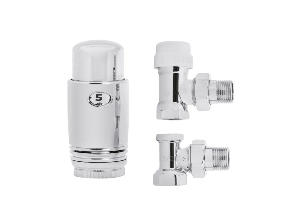 Zestaw zaworów termostatycznych przeznaczony jest do podłączania grzejników w instalacjach centralnego ogrzewania wykonanych z rur stalowych . Zawiera zawór termostatyczny z nastawioną wartością.