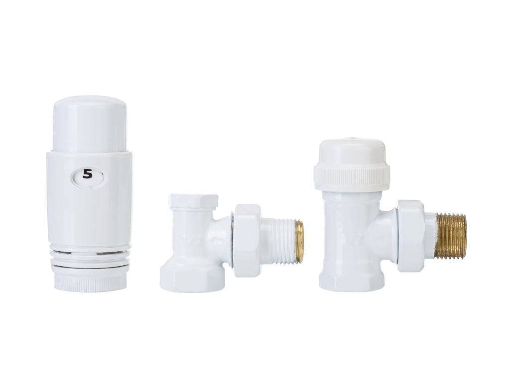CERANO - Zestaw przyłączeniowy zaworu grzejnikowego z głowicą termostatyczną - narożny - biały połysk - 1/2"