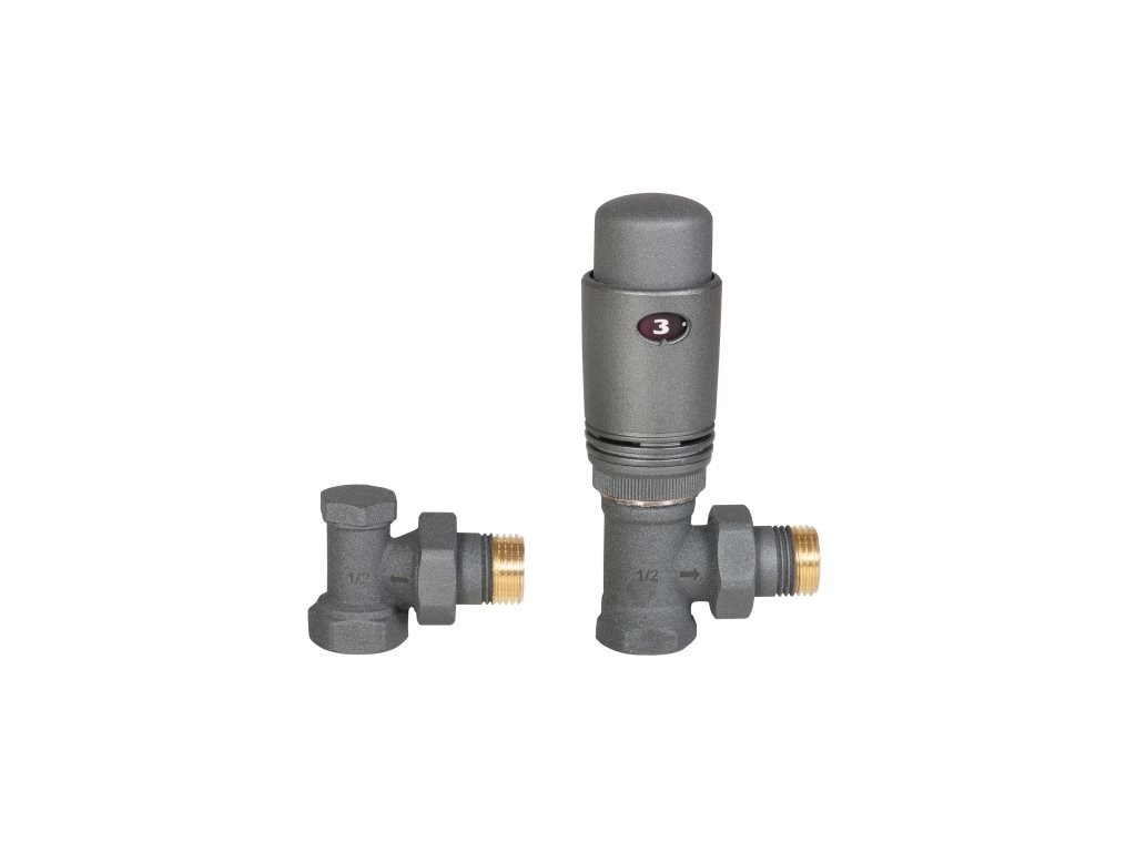 Zestaw zaworów termostatycznych przeznaczony jest do podłączania grzejników w instalacjach centralnego ogrzewania wykonanych z rur stalowych . Zawiera zawór termostatyczny z nastawioną wartością.