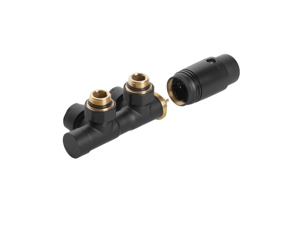 CERANO - Zestaw przyłączeniowy zaworu grzejnikowego z głowicą termostatyczną - podłączenie centralne 50mm - mat czarny