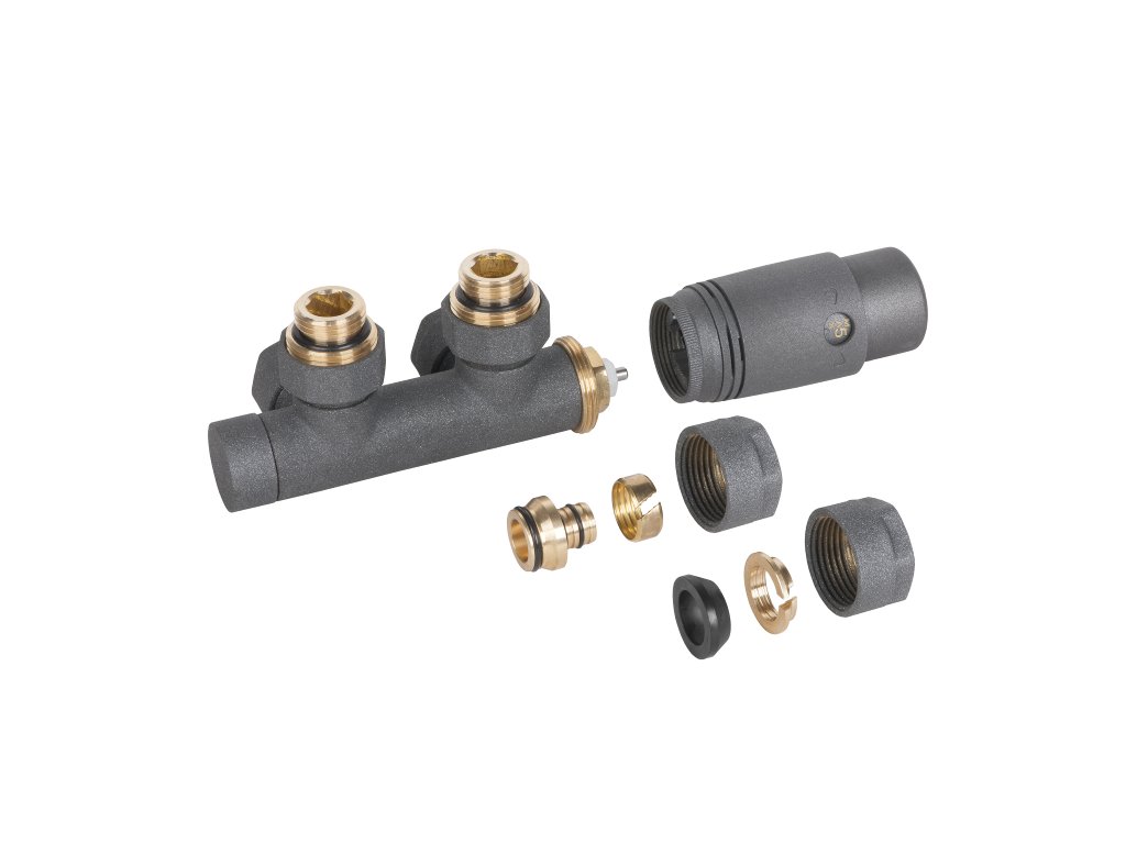 CERANO - Zestaw przyłączeniowy zaworu grzejnikowego z głowicą termostatyczną - podłączenie centralne 50mm - matowy szary